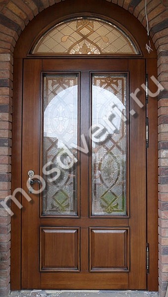 В металлических входных дверях мы используем только безопасное стекло - триплекс или закаленное. Такое стекло выдерживает удары и при повреждении не образует острых осколков. Для частного дома рекомендуем модели с энергосберегающим стеклопакетом - он сохраняет тепло внутри. Стальная рама вокруг стекла имеет декоративное напыление под бронзу или хром. Уличная дверь со стеклом может комплектоваться зеркалом с внутренней стороны. Цена зависит от типа стекла и размера вставки.
